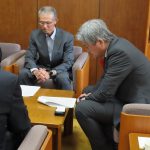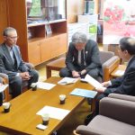 【舩山理事長(写真左)から折原副知事(右)に要望書を提出】