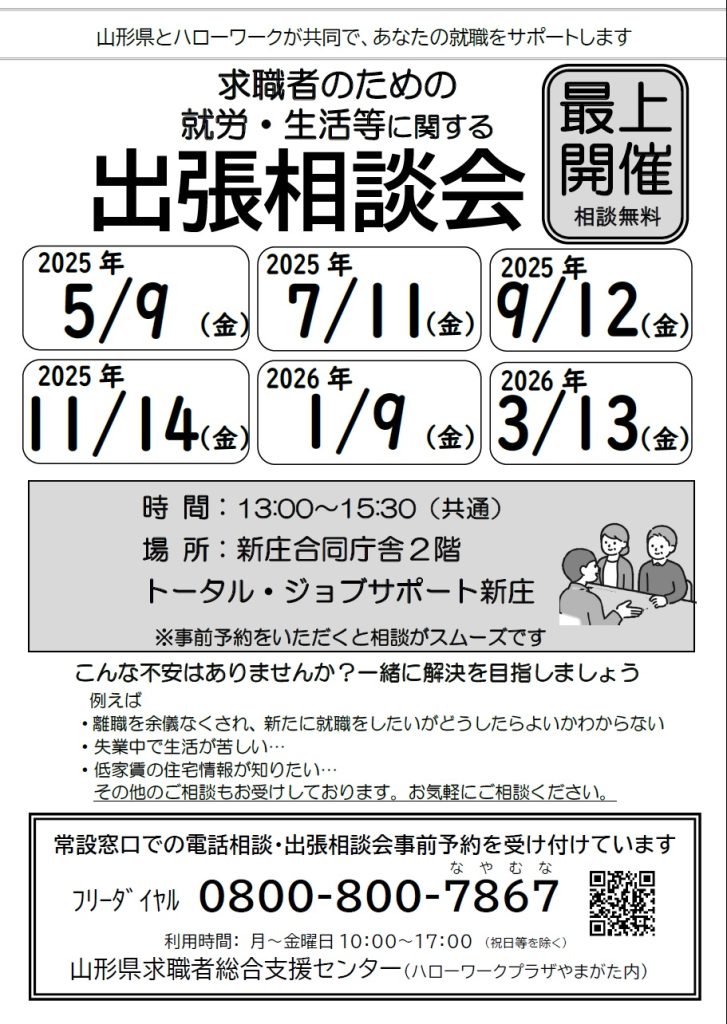 会場:トータル・ジョブサポート新庄(新庄市東谷地田町6-4新庄合同庁舎2F)