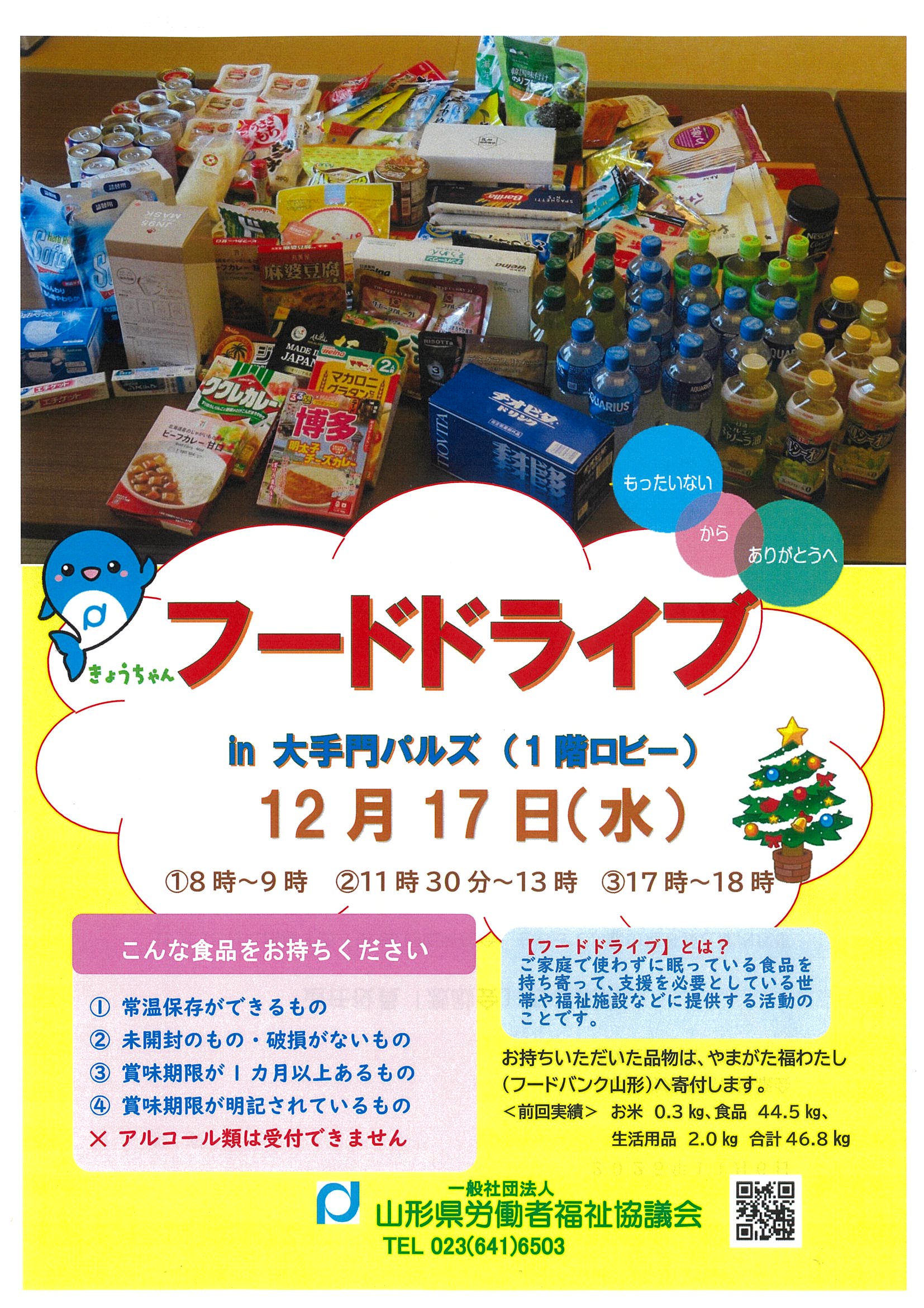 フードドライブ(12月17日)実施のお知らせ! 大手門パルズ第3弾